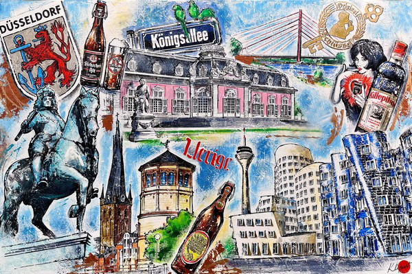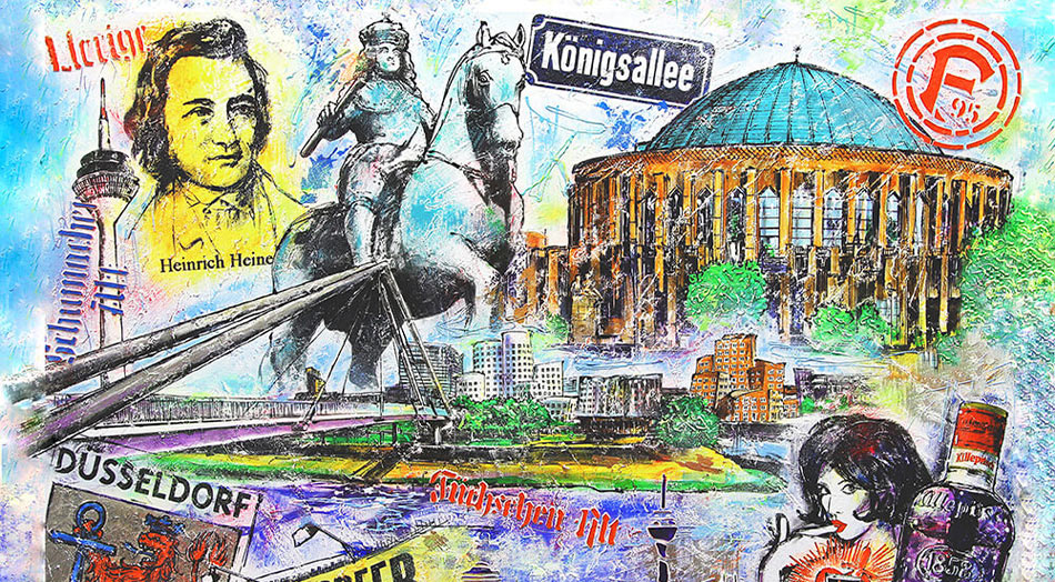 Collage mit Motiven aus der Düsseldorfer Altstadt wie auch des modernen Düsseldorf