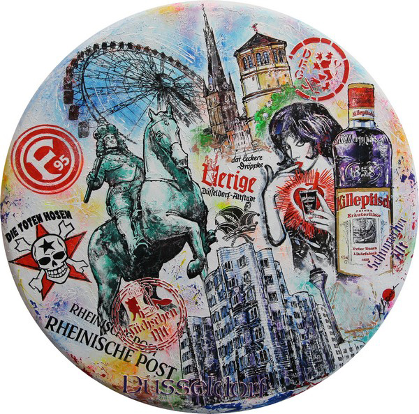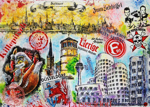 Ein Düsseldorfer Pop Art Bild, als Unikat mit Acrylfarben gemalt, ist ein echter Eyecatcher für Wohnung und Büro. Das handgemalte Originalgemälde im besonderen Querformat bietet dem Raum einen markanten Blickfang. Kunden berichten immer wieder, wie beeindruckt ihre Gäste von den farbintensiven Gemälden sind, die in jeder Wohnumgebung hervorstechen.