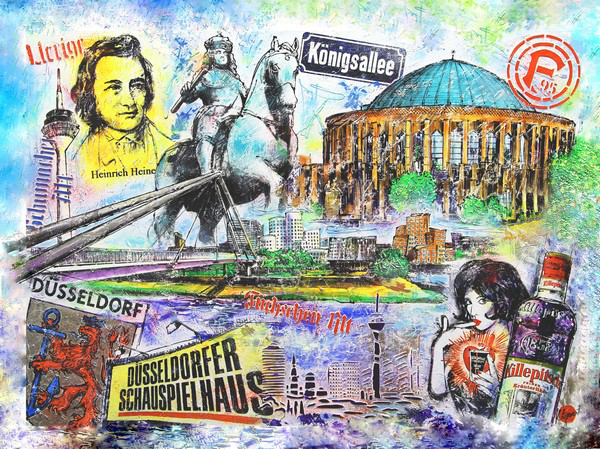 Silvia Klipperts Bilderreihe, die der Stadt Düsseldorf gewidmet ist, stellt eine interessante Hommage an diese pulsierende Metropole am Rhein dar. Die Werke zeigen die wichtigsten Sehenswürdigkeiten, Denkmäler und Persönlichkeiten, die Düsseldorf prägen, und fangen die Essenz der Stadt auf eine einzigartige Weise ein. Hier sind einige Gedanken und kritische Anmerkungen zu dieser Serie.